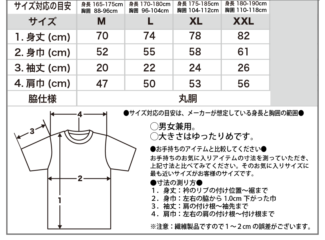 速乾ドライTタイプの場合は「L」もしくは「LL(XL)」。余裕をもたせたい場合は「3L(XXL)」でも良いかもしれません。